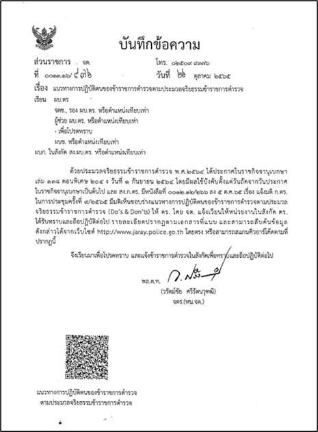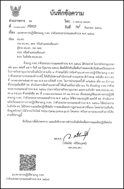 แนวทางการปฏิบัติตามกฎ ก.ตร. ว่าด้วยจรรยาบรรณของตำรวจ พ.ศ.2566